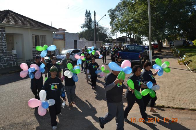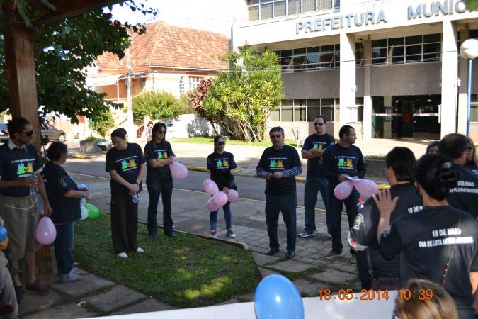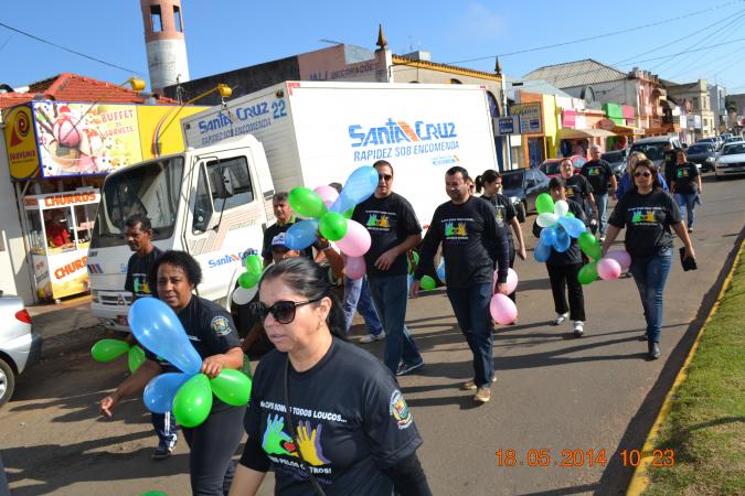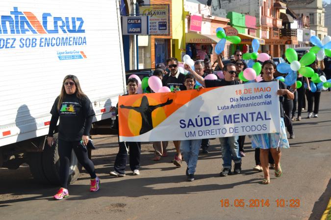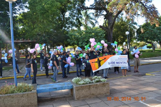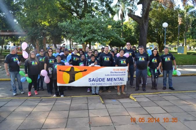 A caminhada contou com profissionais de saúde mental, equipe CAPS e interessados, em que após a chegada na Praça houve uma oficina de esclarecimento sobre o dia da Luta Antimanicomial.